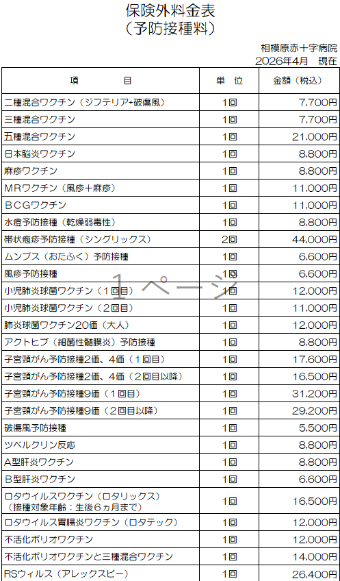 【 13 保険外料金表(物品、予防接種、文書)】