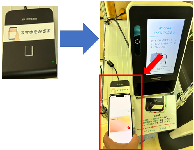 スマートフォンをカードリーダーにかざすことで、マイナンバーカードの読み取りや情報連携が簡単にできるようになります。