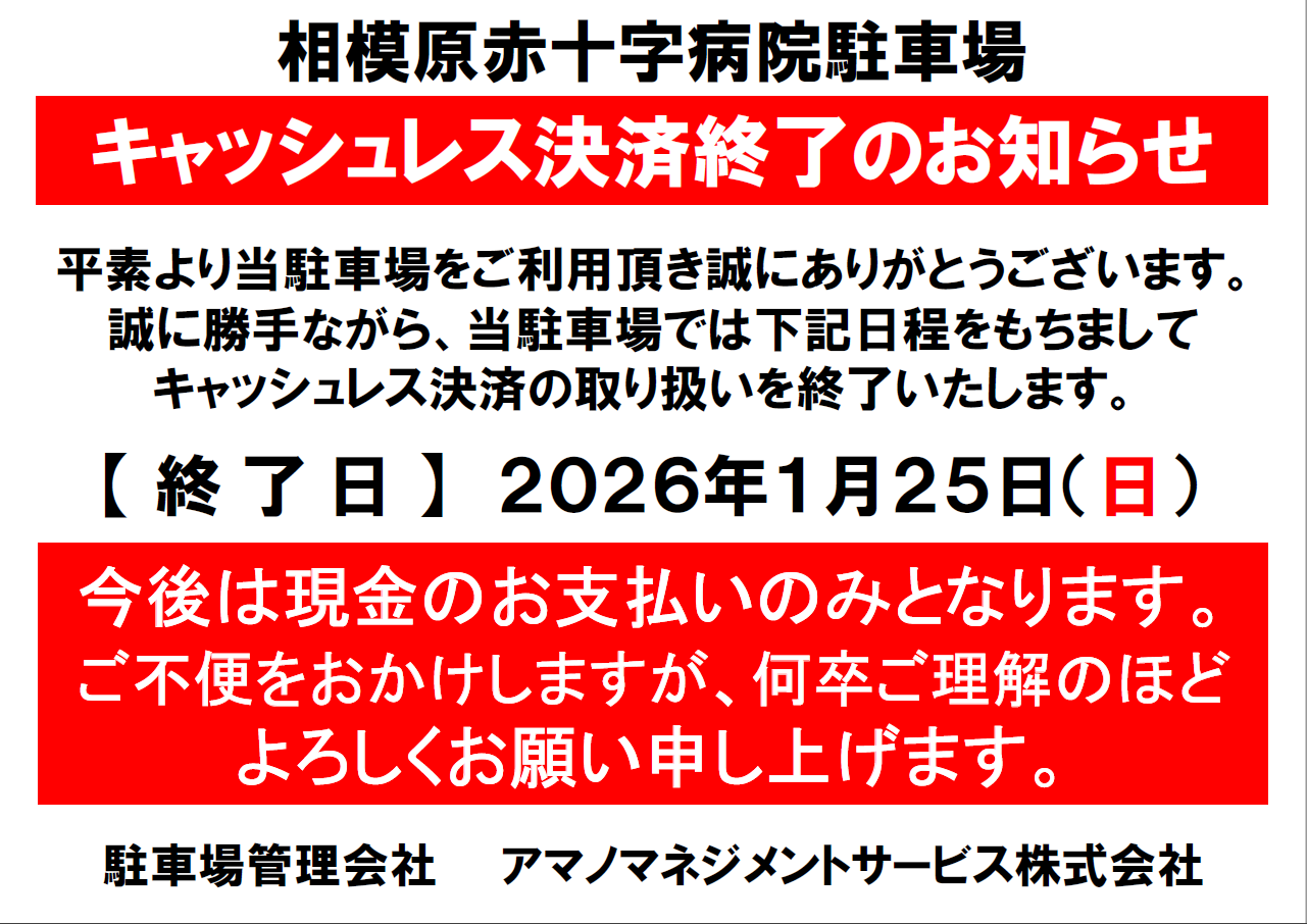 病院駐車場キャッシュレス決済終了のお知らせ